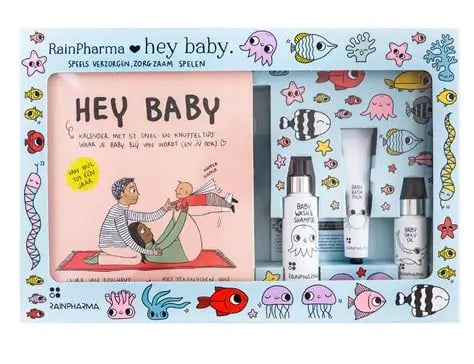 baby wash en shampoo, bath milk en baby body olie van RainPharma. Daarnaast kun je de doos